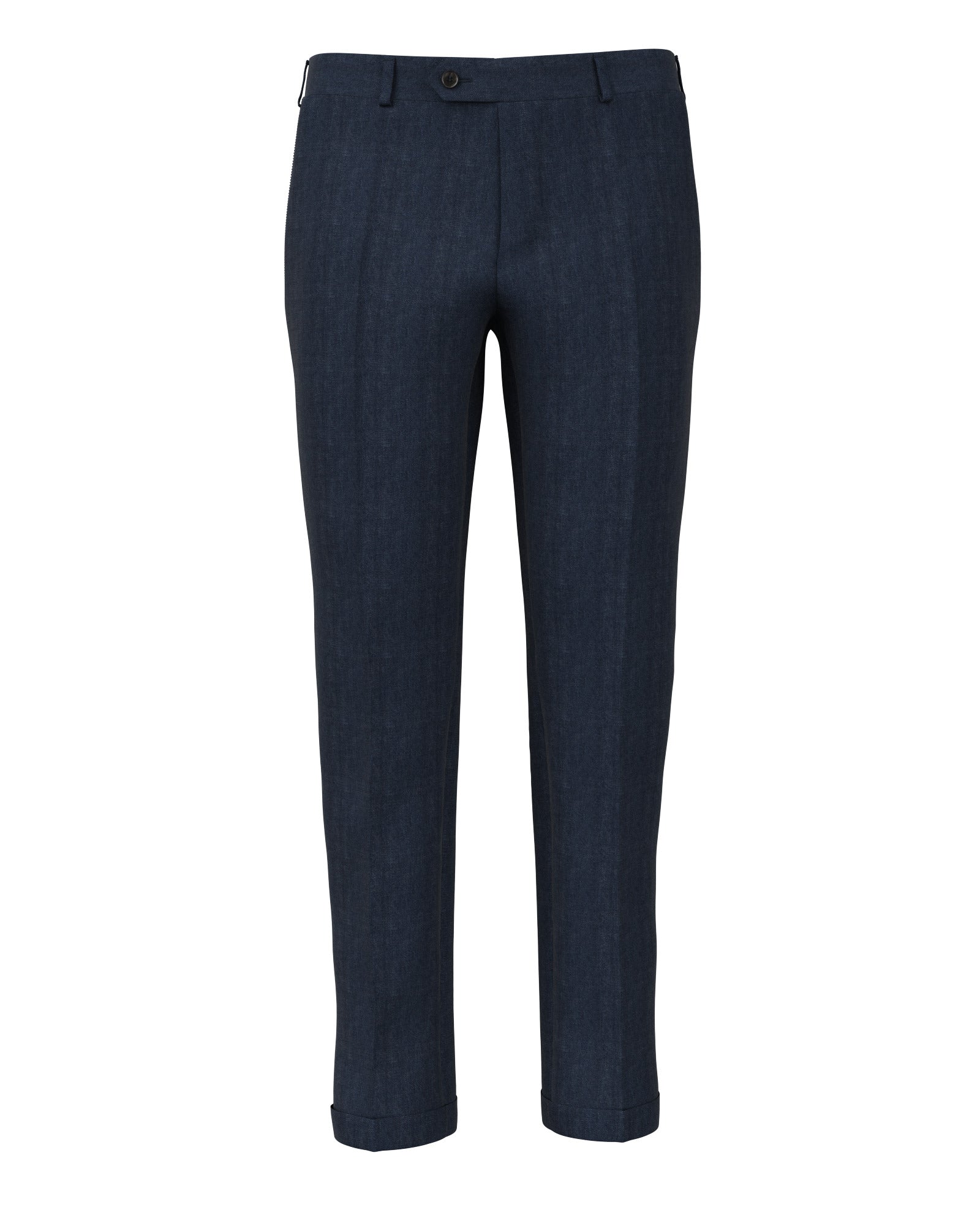 Pantalon réalisé Sur Mesure en denim du fabricant italien Albini. Un tissu à l’allure décontractée iconique, réinterprété dans un style formel pour créer un vêtement à porter pendant le temps libre, mais avec une touche de raffinement.