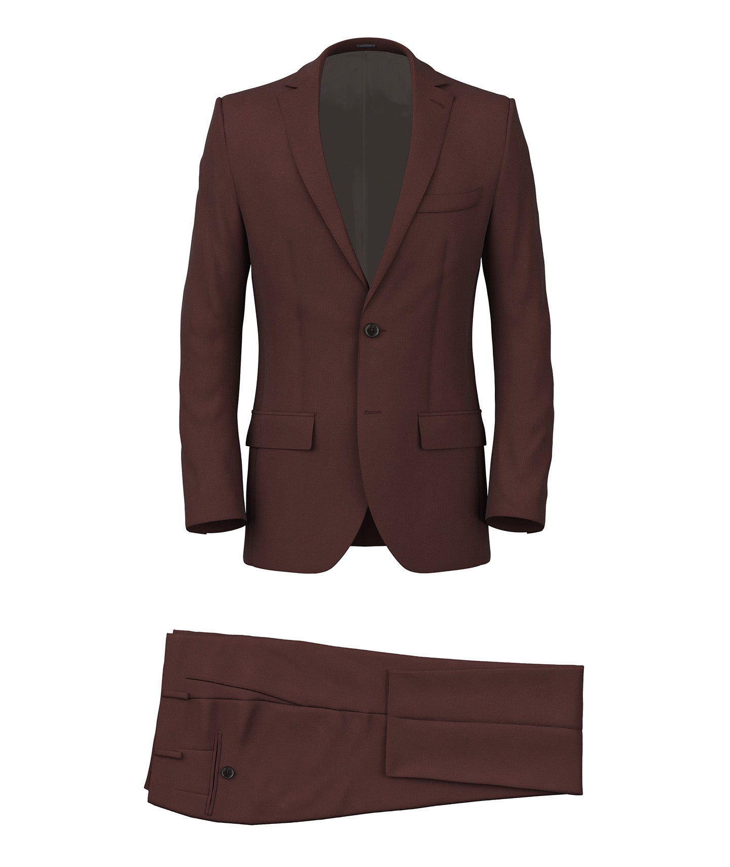 Traje A medida realizado con un tejido rojo ladrillo en twill de algodón de la fábrica de lana Subalpino. En 100% algodón, resulta estructurado y versátil además de ser resistente y práctico, para un uso realmente versátil en todas las temporadas del año. El color rojo burdeos añade un toque refinado al look.